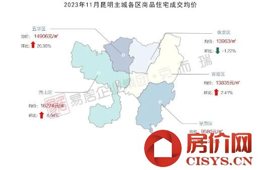 克而瑞云南近日發布的2023年11月昆明主城五區商品住宅“房價地圖”顯示,五華區、西山區、官渡區房價環比上漲,其中,五華區漲幅達20.36%;盤龍區、呈貢區房價環比微降。綜合來看,改善性住宅成交占比上升,對片區成交均價的帶動較為明顯。 改善性住宅成交占比持續上升,帶動片區均價波動 11月中旬,隨著“雙11”促銷結束,昆明主城區多個在售項目收回節點優惠政策,項目單盤周平均來訪量、成交轉化率都較10月有所下滑。遠郊別墅、改善性項目成交量占比上升,帶動片區均價上漲。 該月,五華區春湖小鎮、金泰國際等成交均價較低的項目成交量占比降低,而改善性住宅融創春城書院成交量上升,帶動整體均價上漲20.36%。與此同時,西山區環滇高端改善性項目成交量占比上升,也帶動整體成交均價上漲6.04%。 24個板塊均價環比上漲,豐寧板塊漲幅最高 在11月商品住宅成交的48個板塊中,24個板塊成交均價環比上漲,1個板塊環比持平。其中,豐寧板塊成交均價上漲幅度達82.77%,大幅波動的主要因素是融創春城書院成交占比拉升,帶動板塊內整體成交均價上漲至19721元/平方米。 此外,前衛板塊、空港板塊成交均價環比漲幅都突破20%,學府板塊、西翥板塊漲幅趨近20%。 23個板塊均價環比下降,世紀城板塊降幅最大 在11月商品住宅成交均價環比下降的23個板塊中,降幅最大的是世紀城板塊,成交均價3619元/平方米,環比下降67.52%。10月成交均價環比上漲幅度達47.9%的官渡區經開板塊,11月降幅達32.79%,主要原因是新入市項目富康城紫悅府成交均價7974元/平方米,拉低整體均價。 與此同時,滇池板塊、白塔板塊、螺螄灣板塊等成交均價環比降幅都超過10%。 5板塊均價超2萬,7板塊均價不過萬 11月,金碧板塊、滇池板塊、翠湖板塊、東南板塊、七甸板塊商品住宅成交均價都在20000元/平方米以上。其中,滇池板塊“守擂”成功,以25019元/平方米蟬聯均價最高板塊,但均價較10月環比下降18.79%。 西翥、世紀城、空港、小哨、大學城等7個板塊成交均價不到10000元/平方米。其中,西翥板塊連續3月均價最低,11月3268元/平方米,較10月環比上漲17.77%。 |