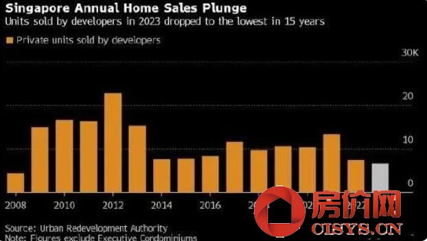 新加坡市區重建局周一發布的數據顯示,隨著樓市限制措施和疲軟的經濟狀況開始給市場帶來壓力,新加坡2023年的新私人住宅銷量降至15年來的最低水平。 去年,新加坡的開發商僅售出6671套私人住宅,為2008年以來最低水平。去年12月的銷量降至135套,不到前一個月銷量的五分之一。 這是新加坡樓市降溫的又一個跡象。迄今為止,新加坡房地產市場避免了全球房地產市場最糟糕的低迷,但越來越多地受到房地產購買限制和經濟放緩的拖累。 去年4月,新加坡將對外國人征收的印花稅提高了一倍,達到60%,這打擊了外部需求。花旗集團預計,今年住宅項目的利潤率將進一步下降。房地產經紀公司赫頓集團(Huttons Group)認為,市場對新房的興趣將在1月份進一步受到考驗,本月至少有6個新樓盤推出。 新加坡樓市的放緩拖累了開發商的股價。當地最大的上市房地產公司City Developments Ltd.去年股價下跌19%,超過了新加坡基準股指的跌幅。 新加坡市區重建局本月早些時候表示,去年私人住宅市場的整體交易量(包括轉售交易)達到了2016年以來的最低水平。 交易放緩尚未對房價產生重大影響,當地需求提振了通常缺乏此類產品的地區的私人住宅綜合體的價值。據官方初步估計,新加坡去年房價上漲了6.7%。 分析師認為,這意味著“如果價格跑在經濟基本面之前,政府仍有可能實施新的限制措施,以確保‘穩定和可持續’的市場。” |