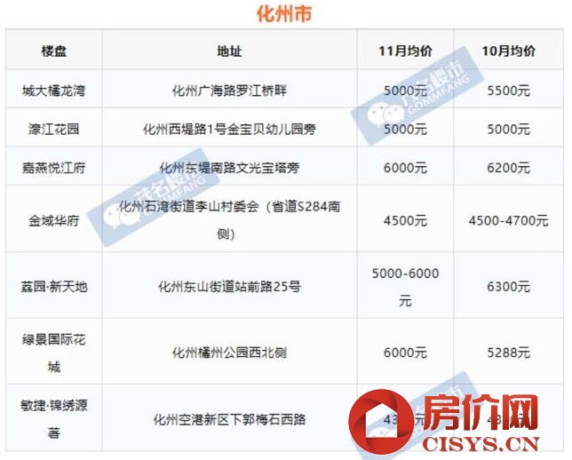 化州11月份房價表出爐!看看是降了還是升了?