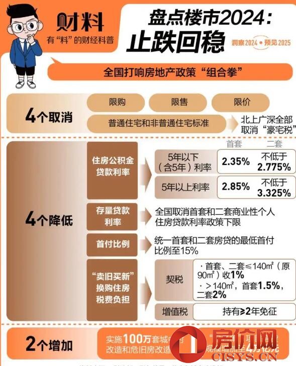 “5·17新政”正式宣布,通過降首付、降利率的方式降低購房門檻與成本,剛性和改善性需求得到釋放;2024年9月,中共中央政治局會議強調促進房地產市場止跌回穩,各地紛紛響應并繼續在需求端優化房地產政策。2024年的最后一個季度,房地產行業也迎來“暖冬”,各地交投趨于活躍,土地市場也持續向好,各地紛紛在年底上架優質地塊。 房地產市場成交回暖,這是行業回歸穩健發展的基石。受到市場的鼓舞,多數房企也一鼓作氣積極促銷,努力穩住銷售。2024年年底,部分民營房企也重啟拿地,北京、上海、廣州和深圳的土地市場“地王”頻現,亮點滿滿。 支持政策已經充分釋放,市場預期的修復也在同步進行。在“白名單”政策的支持下,全國地級及以上城市紛紛建立協調機制,把合規的房地產項目納入“白名單”,推動金融機構加大支持力度。各地“保交樓”也更有底氣,既定目標得以完成。 多措并舉,房企的生存境況也隨之邊際改善。由于大多數房企已經度過了償債高峰期,2024年基本未有新增的出險房企。各方預期改變,多家房企也紛紛發聲看好未來,“輕裝上陣”。 打出“組合拳” 2024年全年,房地產行業的政策密集,且基本都落在需求端,意在提振購房的信心。 中指院監測數據顯示,2024年全國各地出臺房地產調控政策超760次,當前政策環境已處于歷史最寬松階段,特別是需求端政策,涉及居民購房成本、購房門檻的房貸利率、交易稅費、首付比例等均已降至歷史最低水平。 2024年兩個主要的政策節點,一個是“5·17”新政,另一個則是“9·26”新政。 “5·17”新政包括首套、二套房最低首付比例分別降至15%、25%;取消商業貸款利率下限;下調公積金貸款利率等。同時,央行擬設立3000億元保障性住房再貸款,支持地方國有企業收購已建成未出售商品房,用作配售型或配租型保障性住房。 此次調整對需求端有一定的提振,但刺激作用并不明顯。更重磅的政策在2024年9月釋放,9月26日的中共中央政治局會議強調,要“促進房地產市場止跌回穩”。此后,一系列樓市政策“組合拳”陸續推出,四座一線城市隨即松綁限購,市場活躍度提升。 此后,政策也繼續穩步推進。 2024年12月,中央經濟工作會議指出,持續用力推動房地產市場止跌回穩,加力實施城中村和危舊房改造,充分釋放剛性和改善性住房需求潛力。合理控制新增房地產用地供應,盤活存量用地和商辦用房,推進處置存量商品房工作。推動構建房地產發展新模式,有序搭建相關基礎性制度。 在各方政策的呵護之下,樓市持續止跌。國家統計局的數據顯示,2024年11月單月,全國商品房銷售面積為8188萬平方米,銷售金額8270億元,不僅高于10月的水平,還好于2023年同期。 與此同時,房企銷售表現也逐漸企穩。中指院的數據顯示,2024年全年,TOP100房企銷售總額為4.35萬億元,同比下降30.6%,降幅較前11個月縮窄2.3個百分點。2024年12月單月,TOP100房企銷售額同比下降3.41%,降幅有所收窄,環比則增長28.86%。其中,典型企業如華發股份、中建壹品等2024年12月當月銷售增長強勁。 土地市場上,中指研究院最新數據顯示,2024年全年TOP100企業拿地總額9280億元,同比下降29.7%,相較前11月降幅收窄1.8個百分點。其中,中海地產以688億元的權益拿地金額領跑行業,保利發展和華潤置地分別以583億元和543億元排在第二和第三位。 多措并舉保交樓 需求端的政策刺激,是帶動購房者入市的一股重要力量。但不可忽視的是,存量爛尾樓的處置也能夠左右購房者預期,2024年以來,“保交樓”的工作也在持續推進。 2024年12月24日至25日,全國住房城鄉建設工作會議在北京召開。會議提出,持續打好保交房攻堅戰,已交付住房338萬套,完成既定目標。作為保交房攻堅戰的資金支持環節,城市房地產融資協調機制也取得積極成效,根據國家金融監督管理總局預計,截至2024年底,“白名單”項目貸款審批通過金額有望超過4萬億元。 這其中,部分地方政府積極推出可行的“保交樓”舉措,例如鄭州早在2022年就開始大力度地實行商品房收儲幫助去庫存以及保交樓;南寧則創設平穩基金助力保交樓。 資金的支持加之地方政府的發力,“保交樓”工作加快穩妥推進。這其中,金融機構、房企自身的努力也不可忽視。2024年以來,金融機構介入爛尾樓項目并成功盤活的案例逐漸涌現,代表市場參與方仍在為房地產市場企穩作出應有的努力。 很多金融機構在成為“債主”后,也重塑經營角色,將自身改造成為項目的管理者,從而助力“保交樓”。長城資產、信達資產均有相應的嘗試。可供對比的是,2017年中國長城資產成為深圳院子的最大債權人,2020年隨著泰禾集團宣布正式違約,“深圳院子”項目再度停滯。后由長城資產介入,深圳院子順利復工并在2024年入市。 對于房企而言,“保交樓”則是最重要的任務。2024年,碧桂園在銷售額僅完成錄得逾600億元的前提下,仍累計交付房屋約38萬套。近兩年,碧桂園也累計交付近100萬套房屋,交付量位居行業前列。 此外,為了順利“保交樓”,碧桂園也進一步加大資產盤活力度,自2022年以來已處置難銷類資產及盤活沉淀資金回籠超600億元。最近的一次是,碧桂園清倉了芯片巨頭長鑫科技,回籠資金約20億元。 經營有信心 政策到位、市場回暖,房企信心明顯更足。2024年年底以來,多家民營房企董事長更是公開發聲看好未來。 濱江集團董事長戚金興就公開表示,2